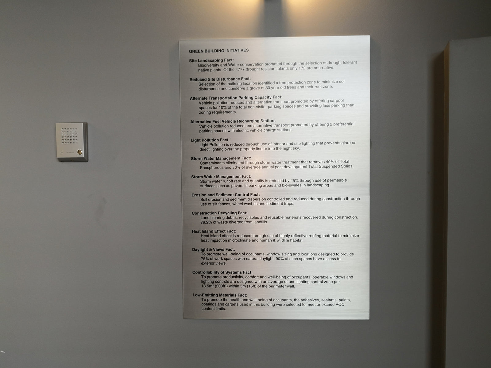 Low-Emitting Materials Fact: To promote the health and well-being of occupants, the adhesives, sealants, paints, coatings and carpets used in this building were selected to meet or exceed VOC content limits.