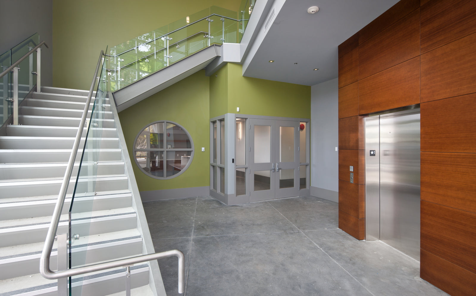 Reduced Site Disturbance: The selection of our building location identified a tree protection zone to minimize disturbance and conserve a grove of 80 year old trees and their root zone.
