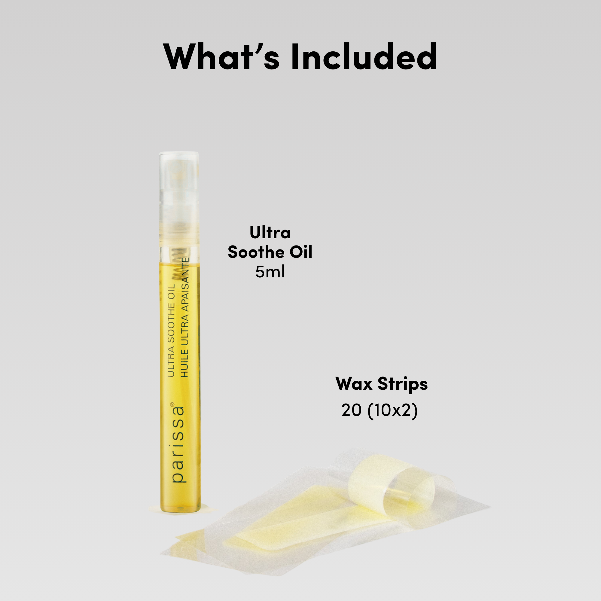 Enjoy instant smoothness anywhere, anytime. Simply warm the wax strips between your hands. Press on and zip off any unwanted peach fuzz. Strips are 100% biodegradable and fragrance-free. For post-wax pampering, our at-home waxing kit includes Parissa Ultra Soothe Oil, a blend of natural botanicals to cleanse and calm skin.